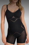 Breathable, lightweight mesh seamlessly shapes the body and sits invisibly underneath clothing. Areas of targeted compression provide extra shaping exactly where you want it. Micro-bones at the waist and Gentle Grip Technology featuring exposed spandex interior panels provide support and prevent rolling down. An open gusset makes for easy trips to the restroom.