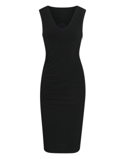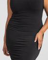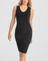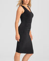 Meet the world's most flattering little black dress. Powerful built-in shaping panels do the work of shapewear without the extra layer. Strategically placed shirring flatters the waist and abdomen, and crepe knit fabric is perfect for night or day.