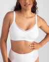 Honeylove's signature flat lace details elevate this everyday essential. Built with a bonded cradle to replace underwire, a smoothing wing to combat back and underarm bulging, and foam cups to enhance your shape. Adjustable, convertible straps let you adjust the fit to your body, and soft, four-way stretch fabric adapts to your every move.