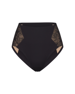 This smoothing compression underwear features premium LYCRA® ADAPTIV fibers that provide stretchy support. A bonded tummy panel offers targeted compression right where you want it. Mesh side panels accentuate your shape and add comfortable smoothing. Pair it with the CrossOver Lace Bra to make a matching set.