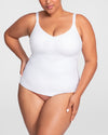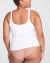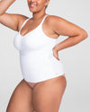 This shapewear cami features a built-in, molded, wireless bra that lifts without sacrificing comfort. Targeted X compression uses doubleknit panels to shape your back and tummy, while releasing everywhere else for maximum comfort. Silicone gripper at the bottom hem keeps the the top anchored as you move. Adjustable straps let you customize your fit. The cami's versatile design can be worn on its own or under clothing.