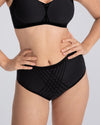 This high-waisted underwear features flat, stretch silicone coated in soft velvetine flocking for flexible support. Raw cut, seamless construction disappears under clothes.