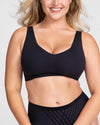 This wireless bra features a bonded cradle that replaces underwire for maximum comfort and support. Premium brushed lining is feather-soft against skin. The bra's hardware-free design lies invisibly underneath tight clothing. Raw cut, seamless bra construction eliminates any chance of bulging.